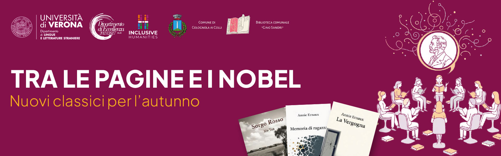 Ciclo di presentazione e discussione di classici della letteratura cinese (Mo Yan, Sorgo rosso) e francese (A. Ernaux) per accompagnare i partecipanti dei gruppi di lettura di Colognola ai Colli alla scoperta di testi di autori premiati con il premio Nobel per la letteratura.